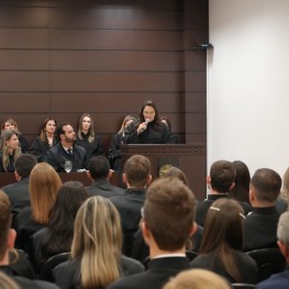 A leitura do compromisso oficial foi conduzida pela bacharel Káthia Ferreira dos Santos. Em seguida, o doutor Fernando Deneka destacou a relevância da profissão e deu as boas-vindas aos novos membros da classe. “Um profissional bom é extremamente sábio e extremamente humilde. Vocês já são advogados e advogadas. Sejam bem-vindos à maior classe profissional do Brasil e, à única citada na Constituição Federal. Vocês fazem parte dela e, a partir de agora, do sistema de justiça”, frisou.