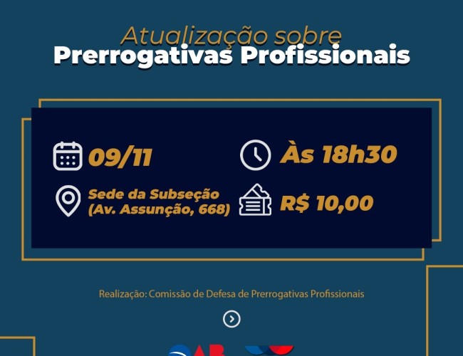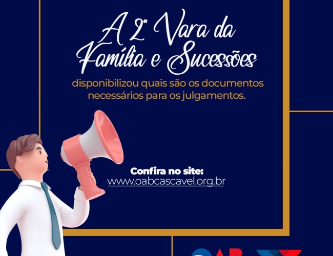 AVISO DE PAUTA - OAB CASCAVEL FARÁ NOVA REUNIÃO PARA DISCUTIR ANDAMENTO DA IMPLANTAÇÃO DE NOVA VARA, EM CASCAVEL Publicado em: 01/03/2024 Nesta sexta-feira (01), a criação do 2º Juizado de Violência Doméstica e Familiar Contra a Mulher na Comarca de Cascavel estará no centro da pauta de uma reunião, agendada para acontecer na sede da OAB Cascavel, a partir das 9 horas. O tema vem sendo debatido desde o ano passado, visto que... Leia mais OAB Cascavel realiza Torneio das Torcidas para advogados Publicado em: 19/02/2024 Inscrições podem ser feitas até o dia 29 de fevereiro, no valor de R$ 50 por atleta Com o objetivo de promover o lazer e a interação entre os advogados, a Comissão de Esportes da OAB Cascavel (Ordem dos Advogados do Brasil, Subseção Cascavel), vai realizar o “Torneio das Torcidas”,... Leia mais “Não é Não”: OAB Cascavel lança campanha para conscientizar mulheres sobre seus direitos Publicado em: 09/02/2024 Comissão do Direito da Mulher alerta que é possível se divertir no Carnaval sem ultrapassar o limite e cometer crime A Comissão da Mulher Advogada, da OAB Cascavel (Ordem dos Advogados do Brasil, Subseção Cascavel), lançou a campanha “Não é Não”, com o objetivo de estimular as... Leia mais OAB Cascavel realiza campanha de arrecadação de material escolar Publicado em: 02/02/2024 Produtos podem ser entregues na sede da OAB Cascavel até o final do mês de fevereiro Moradores de Cascavel podem participar da Campanha Solidária Arrecadação de Materiais Escolares, iniciativa da OAB Cascavel (Ordem dos Advogados do Brasil, Subseção Cascavel), em parceria com o Blog Bem... Leia mais OAB Cascavel fortalece a participação no Hackathon Show Rural Coopavel Publicado em: 30/01/2024 Membros da Comissão de Direito Digital e Inovação vão oferecer mentoria jurídica para apoiar no desenvolvimento dos projetos das equipes participantes A Comissão de Direito Digital e Inovação da OAB Cascavel (Ordem dos Advogados do Brasil, Subseção Cascavel) vai participar da 5ª... Leia mais Comissão de Direito Digital e Inovação realiza reunião de Planejamento Estratégico Publicado em: 29/01/2024 A Comissão da OAB Cascavel planeja um ano movimentado para a instituiçãoNa última quarta-feira (24), a Comissão de Direito Digital e Inovação da OAB Cascavel (Ordem dos Advogados do Brasil, Subseção de Cascavel), realizou o alinhamento do Planejamento Estratégico de 2024.O... Leia mais Após pleito da OAB Cascavel, Fórum instala equipamento de raio-X Publicado em: 26/01/2024 Objetivo é oferecer maior conforto e segurança, não somente aos usuários, mas também aos responsáveis por essa fiscalização, por ser menos invasiva O Fórum da Comarca de Cascavel instalou recentemente equipamento de raio-X, que possibilita mais segurança e controle de acesso a suas... Leia mais OAB Cascavel tem nova presidente no Conselho de Ética Publicado em: 23/01/2024 Advocacia e valorização da profissão são prioridades da advogada nomeada para a função A advogada Daiane Cristina Bertol assumiu a presidência do Conselho de Ética da OAB Cascavel (Ordem dos Advogados do Brasil, Subseção Cascavel). Com o objetivo de zelar pela advocacia, pela... Leia mais OAB Cascavel realiza, neste ano, 66 ações e impacta 4,8 mil pessoas Publicado em: 09/01/2024 Iniciativas visaram a qualificação e capacitação de profissionais, além de ações com impacto social e de natureza política social A OAB Cascavel (Ordem dos Advogados do Brasil, Subseção Cascavel) encerra o ano de 2023, com 66 ações realizadas, que impactaram 4,8 mil pessoas. Para o... Leia mais Juros rotativos de cartão de crédito: novas regras já estão em vigor Publicado em: 09/01/2024 A medida visa combater os altos níveis de inadimplência. Atualmente esses juros estão na casa dos 430% ao ano As novas regras que limitam os juros rotativos de cartão de crédito já estão em vigor no Brasil desde o dia 3 de janeiro de 2024 e é preciso estar atento. A Lei nº 14.690/23, a... Leia mais Projeto de Lei é retirado de pauta após mobilização da advocacia de Cascavel Publicado em: 18/12/2023 Proposta reduziria valor das Requisições de Pequeno Valor (RPV) em processos judiciais envolvendo o Município Uma forte mobilização liderada pela OAB Cascavel (Ordem dos Advogados do Brasil, Subseção Cascavel), durante o final de semana, resultou na retirada de pauta do Projeto de Lei... Leia mais Quais são os direitos dos trabalhadores no final de ano? Publicado em: 13/12/2023 Presidente da Comissão do Direito do Trabalho, da OAB Cascavel, esclarece quais são as obrigações das empresas Com o final de ano se aproximando, muitos trabalhadores têm expectativas com relação ao pagamento da aguardada gratificação natalina, conhecida como 13º salário, e com as... Leia mais OAB Cascavel pede revisão de edital de licitação da Caixa Econômica Federal Publicado em: 08/12/2023 Subseção encaminhou ofício para a OAB Paraná destacando indignação sobre processo de contratação de sociedades de advogados A OAB Cascavel (Ordem dos Advogados do Brasil, Subseção Cascavel) encaminhou, na última quarta-feira (06), um ofício a OAB Paraná (Ordem dos Advogados do... Leia mais Evento sobre ética e política homenageia advogado João Paulo Pyl Publicado em: 04/12/2023 Pyl faleceu aos 53 anos, no dia 05 de setembro, deixando um legado histórico em prol do direito A OAB Cascavel (Ordem dos Advogados do Brasil, Subseção Cascavel) realizará o evento “Ética e Política: Reflexões em Homenagem a João Paulo Pyl”, advogado que faleceu neste ano. O... Leia mais Como organizar as obrigações fiscais para o novo ano? Publicado em: 29/11/2023 Presidente da Comissão de Direito Tributário da OAB Cascavel dá dicas e orientações para evitar transtornos e dor de cabeça Com a proximidade do final de ano e para curtir os festejos despreocupados com o ‘Leão’, os contribuintes deve